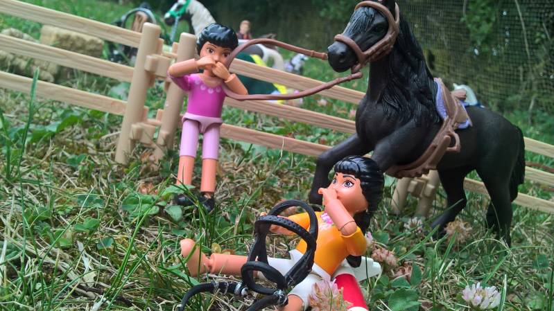 Oh oeps, neemt ze zo het hoofdstel mee naar de grond! Gelukkig werd de les even stopgezet en stopte Annika even om Anna te helpen opstaan, al kon Annika haar lachen niet meer inhouden en schoten ze allebei in de slappe lach...