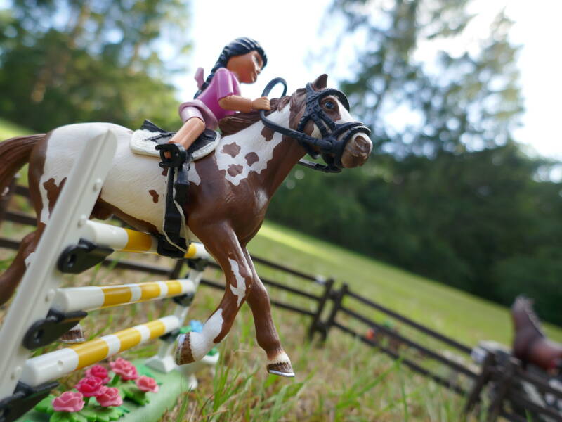 4. Niet-Belville ruiters (dus degene die geen buigbare armen, benen en hoofd hebben) zullen er wat minder goed uitzien op fotoshoots en springfoto's aangezien ik hun houding niet kan veranderen. Wil je graag een niet-Belville ruiter voor ponykamp? Dit is zeker mogelijk! Op buitenrit- en dressuurfoto's staan ze wel erg goed!