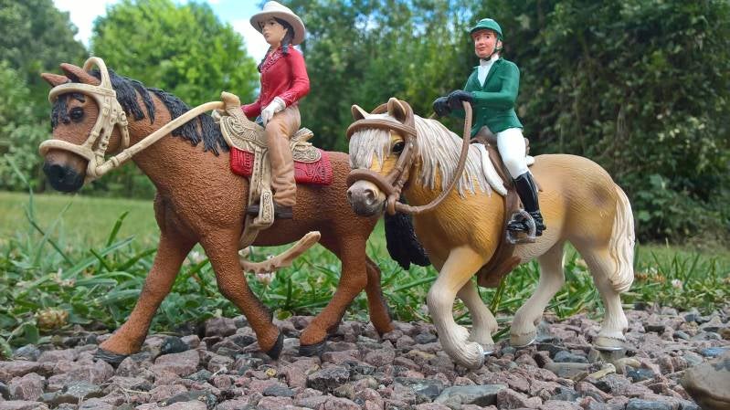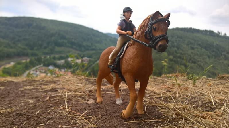 Fun fact: Dit setje op de foto zijn mijn eerste 2 paardjes, zadel, hoofdstel en ruiter van Schleich! Deze foto is trouwens gemaakt in Duitsland, op een ruïne van een oud kasteel.