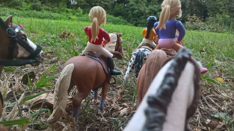 Deze foto's zijn gemaakt toen de ruiters en paarden een buitenrit gingen maken op de camping. Dit is trouwens buitenrit 1. (Herkennen de deelnemers hun combinatie?)
