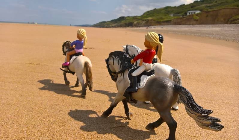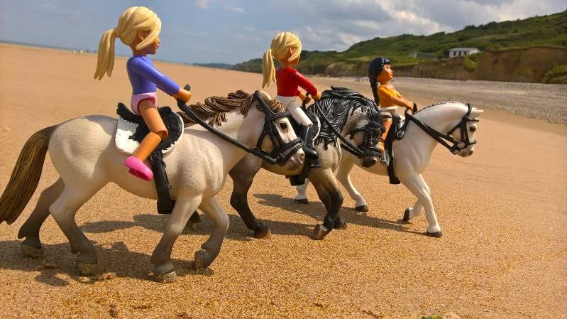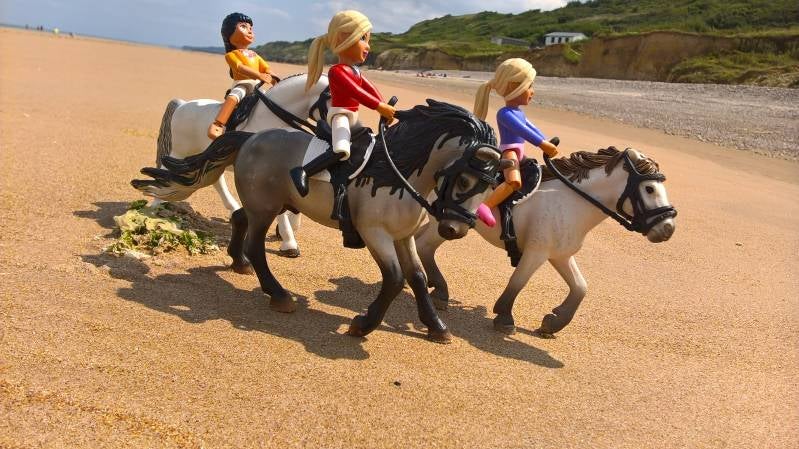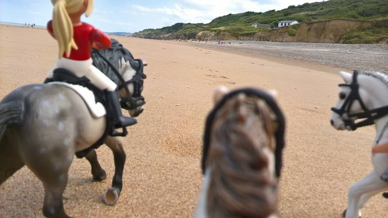 De meiden reden op het strand Omaha-Beach, een prachtig strand in Frankrijk. Waar zich vroeger een deel van d-day heeft afgespeeld, een deel in de geschiedenis van de 2e wereldoorlog. Het is een strand met veel waarde en herinneringen, waar vroeger veel mensen zijn gestorven in de strijd tegen de Duitsers. laat ik nu maar stoppen met de geschiedenisles, kijk maar weer verder. :p
